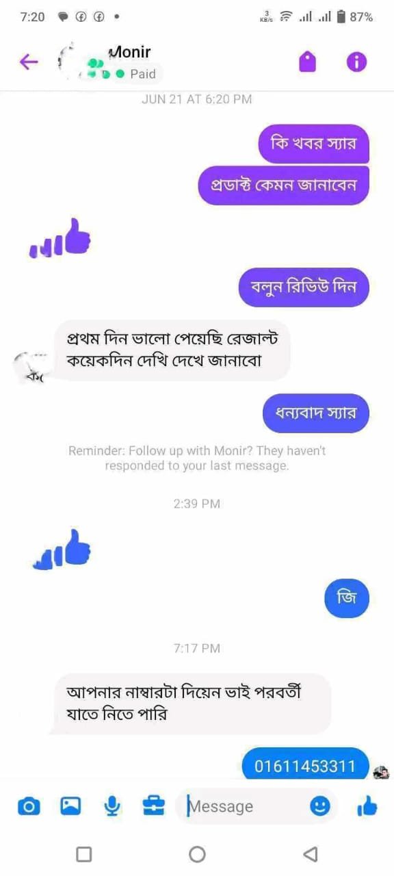 পণ্য সম্পর্কে আরোও বিস্তারিত জানতে আপনার নাম্বারটি ইনবক্স করুন। অথবা সরাসরি 01799810717 কল করুন।